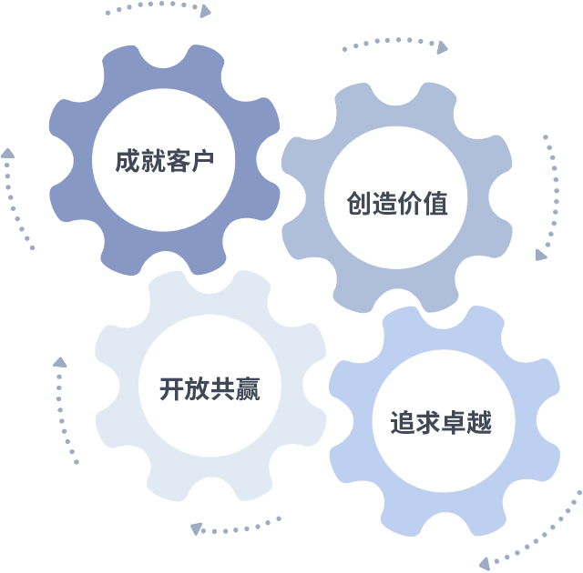成就客户是一切决策的出发点,创造价值是衡量所有工作的标准,追求卓越是im电竞做事做人的态度,开放共赢是im电竞的格局也是最终的结果。价值观的齿轮环环相扣,推动着组织里的每个人不断向前。